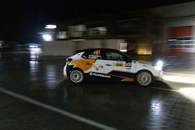 Eine Vorentscheidung um den Sieg bei der zur Deutschen Rallye-Meisterschaft zählenden ADAC Rallye Stemweder Berg fiel bereits in der dritten Wertungsprüfung am Freitagabend. Als Einzige im Feld hatten Kamermans/Müller den richtigen Riecher und stellten ihren Corsa Rally Electric auf Regenreifen. Prompt begann es unmittelbar vor dem Start der Prüfung wie aus Eimern zu schütten, worauf die Niederländer den Nächstschnellsten, Nierenz/Raithel, einen Rückstand von 18,6 Sekunden aufbrummten und souverän die Führung übernahmen.