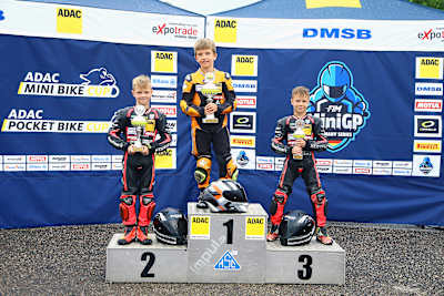 Bruno Stark (1./1., Oberheldrungen): „Bopfingen gefällt mir gut. Am Anfang war ich nach den Trainings noch nicht zufrieden, da Arthur (Brosius) schneller war als ich. Ich habe mir zum Ziel gesetzt, der beste AMC-Sachsenring-Fahrer zu sein. Vor den Rennen war ich sehr aufgeregt. Mit guten Starts konnte ich in beiden Läufen direkt auf drei vorfahren. Im Verlauf konnte ich die Kehl Zwillinge überholen und beide Rennen gewinnen. In Harsewinkel möchte ich genau das Gleiche machen wie heute.“