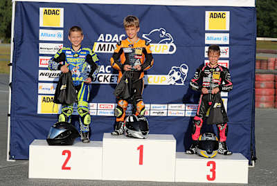 Die Fahrer des ADAC Pocket Bike Cup kamen am vergangenen Samstag in Harsewinkel zu den Meisterschaftsläufen dreizehn und vierzehn zusammen. Bei sommerlichen Temperaturen gewann Mika Fleischer (Schmitten) das erste Rennen im Emstalstadion. Bruno Stark (Oberheldrungen) raste im zweiten Lauf auf dem 786 Meter langen Kurs zum Sieg.