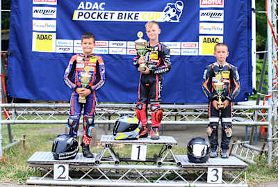 Auf dem Vogelsbergring in hessischen Wittgenborn kämpften die Piloten vom ADAC Pocket Bike Cup am vergangenen Samstag in den Saisonrennen neun und zehn um weitere Meisterschaftspunkte. Bei wolkenlosem Himmel und hochsommerlichen Temperaturen raste Mika Fleischer (Schmitten) zum Sieg im ersten Rennen. Leon Kehl (Ebhausen) gewann den zweiten Lauf des Tages.