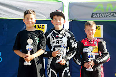 Alwin Munzert (1./1., Mülsen): „Es hat sehr viel Spaß gemacht hier wieder zu fahren. Es lief von Beginn an gut, ich bin schnell wieder reingekommen und habe einen guten Rhythmus gefunden. Das erste Rennen war sehr gut, im zweiten hatte ich ein Sturz, aber zum Glück konnte ich weiterfahren und das Rennen noch gewinnen. Ich werde dieses Jahr noch einmal antreten und hoffe dann wieder in die Top-Drei fahren zu können.“