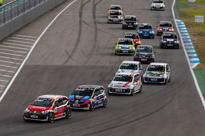 Auch die Akteure des ADAC Tourenwagen Junior Cup zeigten den Fans in ihren baugleichen VW up! GTI wieder einmal spannenden Motorsport. Und in Durchgang eins wurde sogar Geschichte geschrieben, denn nie zuvor im ADAC Tourenwagen Junior Cup gab es einen jüngeren Sieger als den 14-jährigen Groneck. Er begann das Rennen als Zweiter, überholte in der ersten Runde Julian Konrad und war so neuer Spitzenreiter. Das Quartett Groneck, Konrad, Mike Müller und Finn Niklas Wollnik lieferte sich dann lange einen Vierkampf, in dem sich der Jüngste schließlich durchsetzen konnte. Hinter Groneck sahen die beiden Titelaspiranten Konrad und Müller die Schachbrett-Flagge. In Lauf zwei der Nachwuchsserie konnte Groneck seinen Vortags-Triumph bestätigen und abermals als Erster die Ziellinie überqueren. Müller und Konrad vervollständigten das Podium.