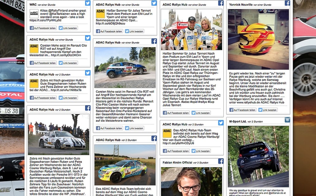 Um die Faszination des Rallye-Sports dreht sich auch alles beim offiziellen ADAC Rallye Hub. Das kostenlose Online-Kommunikationstool des ADAC Rallye-Sports berichtet rund um die Uhr live vom deutschen Lauf zur FIA Rallye-Weltmeisterschaft. Auf www.rallyehub.de finden Fans sämtliche Informationen aus den Social-Media-Kanälen von Twitter, Facebook, Instagram und Youtube auf einer zentralen Seite. Neben aktuellen News aus der Rallye-Weltmeisterschaft ist auch eine umfangreiche Berichterstattung vom ADAC Rallye Masters und der Deutschen Rallye Meisterschaft (DRM) das zentrale Element des ADAC Rallye Hub.