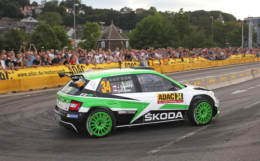 Die ADAC Rallye Deutschland 2017 hat begonnen. Der deutsche Lauf zur FIA Rallye-Weltmeisterschaft hatte gleich am ersten Tag mehrere Highlights zu bieten. Sportlicher Höhepunkt war dabei eine atemberaubende erste Wertungsprüfung, die in der Innenstadt von Saarbücken 12.000 Zuschauer begeisterte. Auf dem 2,05 km langen City-Rundkurs zweimal über die Wilhelm-Heinrich-Brücke zeigten die Rallye-Stars millimetergenaue Drifts durch die engen Haarnadelkurven. Mit 2:05.9 Minuten markierte WRC-2-Pilot Jan Kopecký (CZE) dabei überraschend die Bestzeit und platzierte seinen Skoda Fabia R5 noch vor der versammelten WRC-Elite.