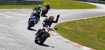 Fahranfänger sollten zuerst auf das bewährte ADAC Sicherheitstraining für Motorräder zurückgreifen. Denn beim ADAC Rennstrecken-Motorradtraining wird nicht nur der Fahrer, sondern auch das Motorrad auf einer Rennstrecke enorm gefordert!