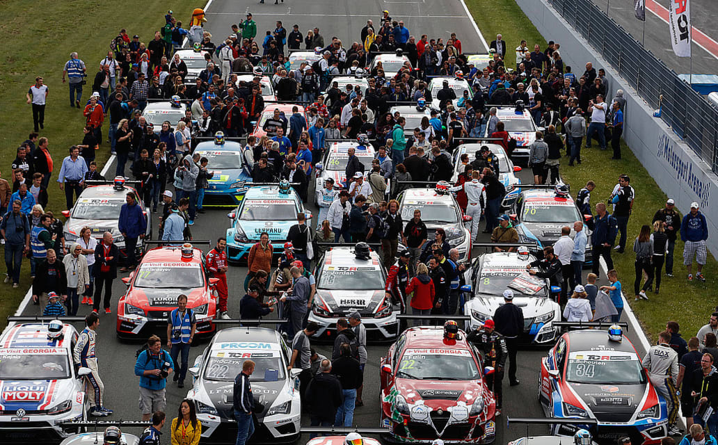 Gruppenbild mit Tourenwagen: Den gemeinsamen Start mit der TCR International nutzte die ADAC TCR Germany zu einer tollen Aktion. Am Sonntagmorgen versammelten sich alle Fahrer der nationalen und internationalen Serie in kompletter Wettkampfausrüstung mit ihren Fahrzeugen zum einem gemeinsamen "Familienfoto" im Start-Ziel-Bereich. Von 10.30 Uhr bis 11.15 Uhr öffneten sich dann für die Zuschauer die Tore zum "pit walk", bei dem sowohl Fahrer als auch Teams für Fragen und Fotos zur Verfügung standen.