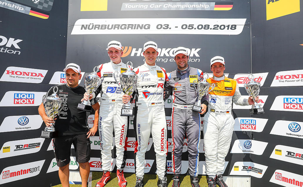 Mike Halder (22, Meßkirch, Team Honda ADAC Sachsen) hat das siebte Saisonrennen der ADAC TCR Germany gewonnen und auf dem Nürburgring seinen zweiten Saisonsieg gefeiert. Der ADAC Stiftung Sport-Förderpilot gewann im Honda Civic TCR souverän vor seinem Teamkollegen Dominik Fugel (21, Chemnitz, Team Honda ADAC Sachsen) und Niels Langeveld (30, Niederlande, Racing One) im Audi RS3 LMS. Der Niederländer übernahm damit auch die Führung in der Gesamtwertung und liegt nun vier Punkte vor Harald Proczyk (42, Österreich, HP Racing International), der das Rennen im Opel Astra TCR auf Platz 13 beendete.