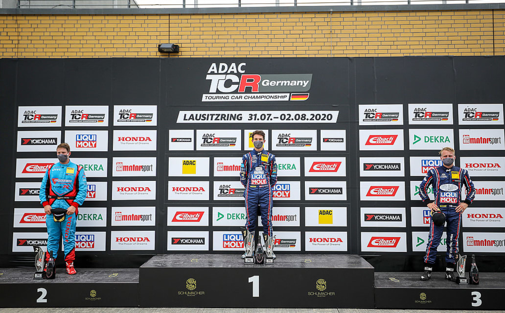 Was für ein Einstand für Nico Gruber: Der 19-Jährige vom Hyundai Team Engstler hat sich gleich in seinem ersten Rennen in der ADAC TCR Germany den ersten Sieg gesichert. Im Hyundai i30 N TCR gewann der Junior am Sonntagvormittag auf dem Lausitzring vor Mike Halder (24, Meßkirch, Profi Car Honda ADAC Sachsen) im Honda Civic und Antti Buri (31, Finnland, Hyundai Team Engstler), der von der Pole Position ins Rennen gegangen war.