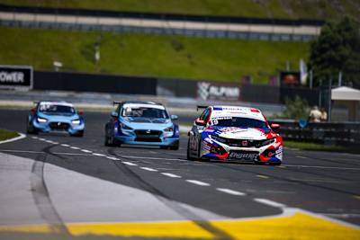 Sehr viel spannender war der Kampf um Platz zwei, den Martin Andersen für sich entschied. Über nahezu die gesamte Renndistanz lieferte sich der Däne ein Duell mit den ROJA-Hyundais von René Kircher und Robin Jahr (31, Teltow, ROJA Motorsport by ASL Lichtblau). Immer wieder klopfte Kircher beim Dänen an, aber dieser konnte die Tür jedesmal schließen und war mit seinem Ergebnis sichtlich glücklich. „Es war ein sehr hartes Rennen. Ich hatte einen guten Start, konnte aber dann die Pace von Szymon nicht mitgehen. Die letzten fünf Runden haben sich dann wie eine Ewigkeit angefühlt, da Kircher sehr schnell war. Ich bin sehr zufrieden mit dem Ergebnis und konnte wichtige Punkte für die Meisterschaft mitnehmen“, bilanzierte Andersen sein Rennen.