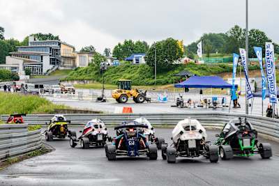 Bei den Junioren macht der 15-jährige Genten von Beginn an keinen Hehl daraus, dass er der schnellste Fahrer bei den Junioren ist. Drei Vorlaufsiege sprechen eindeutig für den Nachwuchspiloten. In Gründau setzte er einen Camotos Rapace ein. Ben Henschel, Thijmen Houben (Niederlande) und Maximilian Schulz vertrauen auf eine Lifelive TN5. Henschel und Houben zeigten den ganzen Tag sehenswerte Duelle um die Position hinter Genten. Im dritten Vorlauf konnte Schulz am Start sogar in Führung gehen und wurde im Heat Dritter. Das ging Gente vom Start weg bei nassen Bedingungen in Führung und gab diese bis ins Ziel nicht mehr ab. Houben und Henschel komplettierten das Podium.