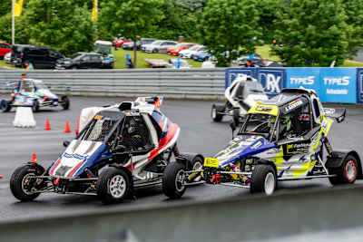 Fünf Senioren- und vier Junioren-Fahrer gingen bei den Läufen in Gründau an den Start. Neu dazu gestoßen sind bei den Junioren der mit Autocross-EM Erfahrung ausgestattete Jordan Genten aus Belgien und Rookie Maximilian Schulz, der am Samstag sein erstes Crosscar-Rennen in Angriff nahm. Über dem Gründautalring lag zu Beginn am Renntag eine Wolkendecke, die zwischenzeitlich auflockerte, um sich anschließen wieder zu schließen und bei den Finalrennen mit starkem Regen den komplett asphaltierten Kurs unter Wasser zu setzen. Zum Einsatz kam auch an diesem Wochenende bei allen Teilnehmern synthetischer Treibstoff von Serienpartner P1 und Reifen von Goldspeed.