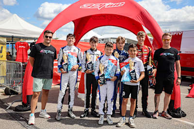 Mit einem ersten Ausrufezeichen startete Meisterschaftsleader Maximilian Schleimer (Maranello SRP Factory Team) in das Rennwochenende. Der Rheinland-Pfälzer fuhr im Qualifying Bestzeit. Doch in einem Vorlauf schied er durch einen technischen Defekt aus und fiel in das Verfolgerfeld zurück. Neuer Spitzenreiter war Enzo Bol (SP Motorsport) aus den Niederlanden. Er gewann auch den Super Heat und bildete im Finale gemeinsam mit Claudia Henning die erste Startreihe. Die Bayerin übernahm nach vier Runden die Führung und hatte schnell ein kleines Polster. Bol rückte zwar zum Ende nochmal heran, schaffte es aber nicht mehr das Klassement zu drehen. „Das war ein super Wochenende. Schon im Zeittraining hatte ich die Bestzeit in meiner Gruppe und konnte dann auch in den Heats gewinnen. Wir hatten zwischenzeitlich ein Problem mit dem Setup, haben das aber hinbekommen. So darf es nun auch gerne in Wackersdorf weiter gehen“, strahlte die Siegerin nach der Pokalübergabe.