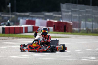 Gustav Christensen (CRG Holland) war Schnellster im Qualifying der Deutschen Mini-Kart-Meisterschaft und hielt auch in den Heats am Samstag den bereits feststehenden Champion Milan Rossi (Lanari Racing Team) in Schach. Am Sonntag meldete sich der Saarländer aber wieder an der Spitze zu Wort. Er gewann den Super Heat und ließ sich auch im Finale seinen fünf Saisonerfolg nicht nehmen. „Ich bin stolz die Meisterschaft gewonnen zu haben. In fünf von sechs Finals war ich siegreich, das ist eine super Statistik.“, resümierte der DMKM-Premierenchampion.
