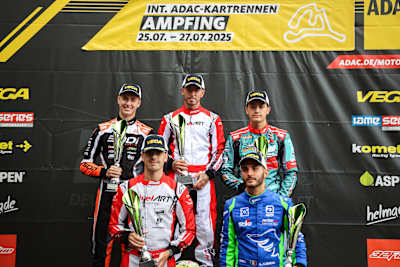 Beim dritten Saisonlauf der Deutschen Kart-Meisterschaft ließ Daniel Stell keine Zweifel an seinen Siegesambitionen aufkommen. Nachdem im Zeittraining noch Dion Van Werven (CPB Sport) die Bestmarke setzte, übernahm der Lokalmatador vom Kartshop Ampfing das Zepter. Schon am Samstagabend führte er das Klassement an und dominierte ebenfalls den Sonntag. Nach Platz eins im Super Heat sicherte er sich auch im Finale den Sieg. Dabei übernahm Stell nach zwei Runden die Führung und gab diese bis ins Ziel nicht mehr ab. „Das ganze Wochenende war super. Wir waren auf nasser und trockener Strecke konkurrenzfähig. Es ist trotzdem immer schwierig am Ende auch zu gewinnen, es hat aber alles gepasst und ich bin glücklich über den Erfolg“, zeigte sich der Sieger zufrieden.