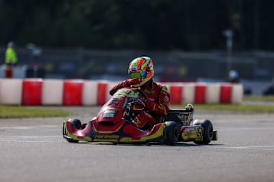 Dort ließ Papst von Beginn an keine Zweifel aufkommen. Souverän führte er das Feld an, während sich hinter ihm Martina Rumlenova (MVM Racing Team) als direkte Verfolgerin behauptete. Hinter dem Führungsduo komplettierten nach 22 Rennrunden Mattao Mason (CRG Holland), Filip Planeta (Hagemann Racing) und Maxim Becker (Haupt Racing Team) die Pokalränge. Dramatisch wurde es dagegen für den Titelfavoriten: In Runde neun musste Marc Alexander Reistrup (CRG Holland) sein Kart vorzeitig im Aus abstellen. Am Ende reichte es für den Dänen aber trotzdem zum Titelgewinn. „Wir hatten im Saisonverlauf viele tolle Duelle mit einer starken Konkurrenz. Am Ende hat es für mich zum Titel gereicht, das freut mich sehr“, fasste er seine Emotionen zusammen.
