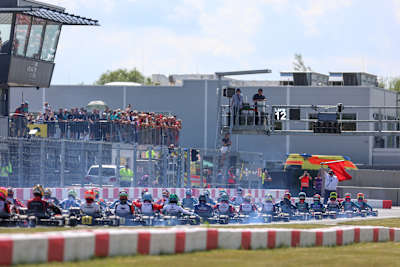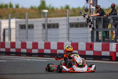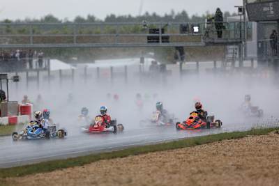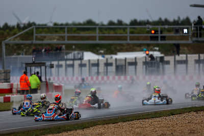 Der Endlauf fand dann unter schwierigen Bedingungen statt. Die Strecke war nass und forderte volle Konzentration von den Fahrerinnen und Fahrern. Wickop übernahm zunächst die Führung, drehte sich jedoch bereits in der zweiten Runde – neuer Spitzenreiter war sein Teamkollege Bruno Greiling (VM Energy Corse Germany). Der Spanier kontrollierte von da an das Rennen und ließ sich den Sieg nicht mehr nehmen. „Von Position drei aus hatte ich einen guten Start und konnte in Führung liegend das Feld kontrollieren. Das war für mich ein perfektes Debüt in der Deutschen Kart-Meisterschaft.“