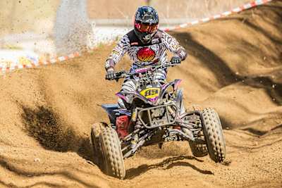 Die Quad-Klasse präsentierte sich zum Saisonstart mit einem vollen, internationalen Fahrerfeld in Hänchen. Erfahrene, etablierte Fahrer rollten dort ebenso an den Start wie einige neue, junge Piloten und mit Lilly Becker (D/Yamaha) auch eine Dame. Manfred Zienecker fuhr in der Qualifikation die Bestzeit und erhielt dafür den Sachpreis von Weber-Werke. Im ersten Lauf strich Zienecker die Holeshot-Prämie des Steinberg Racing Teams ein. Hinter ihm verhakten sich in der Startrunde gleich mehrere Quads, wodurch Zienecker einen ungefährdeten Laufsieg vor Jordi Gieler (D/Yamaha) und Matteo Stiller (D/Yamaha) einfuhr. Auch im zweiten Lauf ging Zienecker vom Start weg in Führung, doch Gieler hielt gut mit und setzte ihn unter Druck. Doch Zienecker spielte seine Erfahrung aus, behielt die Nerven und gewann auch das zweite Rennen vor Gieler und Stiller. Damit gingen der Tagessieg und die Meisterschaftsführung an Zienecker vor Gieler und Stiller. Luca Stiller (D/Yamaha) und Adam Tucek (CZ/Yamaha) platzierten sich auf den Tagesrängen vier und fünf.
