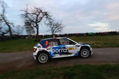 Auch Lokalmatador Julius Tannert und Beifahrer Frank Christian liegen im VW Polo Rally2 mit 2,1 Sekunden Rückstand noch voll in Schlagdistanz, während Dominik Dinkel/Ursula Mayrhofer nach der Bestzeit in WP1 wegen eines gebrochenen Stoßdämpfers am Ford Fiesta Rally2 hinten links mehr als zehn Sekunden verloren und auf Zwischenrang 5 zurückfielen.