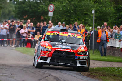 Breitensport auf allerhöchstem Niveau boten die Fahrer bei den DRM Nationals, dem ehemaligen ADAC Rallye Masters. Lediglich 0,4 Sekunden hinter den führenden Gaststartern Richard Genesca und Fabrice Nambruide aus Frankreich beendeten Christopher Gerhard und Christian Frorath (Mitsubishi Lancer Evo X) die ersten drei Wertungsprüfungen auf Platz zwei. Knapp dahinter folgen Andreas Dahms und Paul Schubert mit ihrem Porsche 911 als Dritte. Nichts Neues dagegen bei der Gentlemen Trophy, wo das Team Dennis Rostek/Michael Wenzel (Skoda Fabia R5) da weitermachte, wo es in Sulingen aufgehört hatte und an der Spitze liegt. In der DRM Classic gehen Walter Gromöller und Philipp Musholt im Opel Ascona 400 am Samstag als Führende in die zweite, lange Etappe bei der ADAC Rallye Stemweder Berg.
