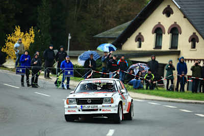 Platz zwei ging an Walter Gromöller und René Meier, die damit im Opel Ascona 400 die NC2-Wertung und auch die DRM Classic klar gewannen. „Der zweite Platz bei den Nationals und der Sieg in meiner Wertung NC2 ist mir nicht so wichtig. Ich wollte die Classic gewinnen, hatte da einen großen Vorsprung und bin deshalb zum Schluss langsamer gefahren. Wenn da noch etwas passiert wäre, hätten mich alle für verrückt erklärt. Das wechselhafte Wetter machte die Sache schwierig. Am Samstag war ich mal mit Trockenreifen im Regen und dann mit Regenreifen im Trocknen unterwegs. Da muss man schon vorsichtig sein“, erklärte Walter Gromöller.