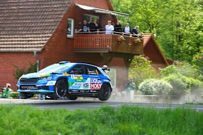 Oliver Bliss und Julius Simon ließen in der DRM Trophy nichts anbrennen und siegten im Skoda Fabia R5 klar vor den Markenkollegen Raphael Ramonat und Karina Derda. „Die ersten Prüfungen haben wir verschlafen, da sind wir einfach zu sehr auf Nummer sichergegangen. Dann lief es aber immer besser und kontrolliert bis zum Schluss. Ich bin sehr zufrieden“, sagte Bliss.