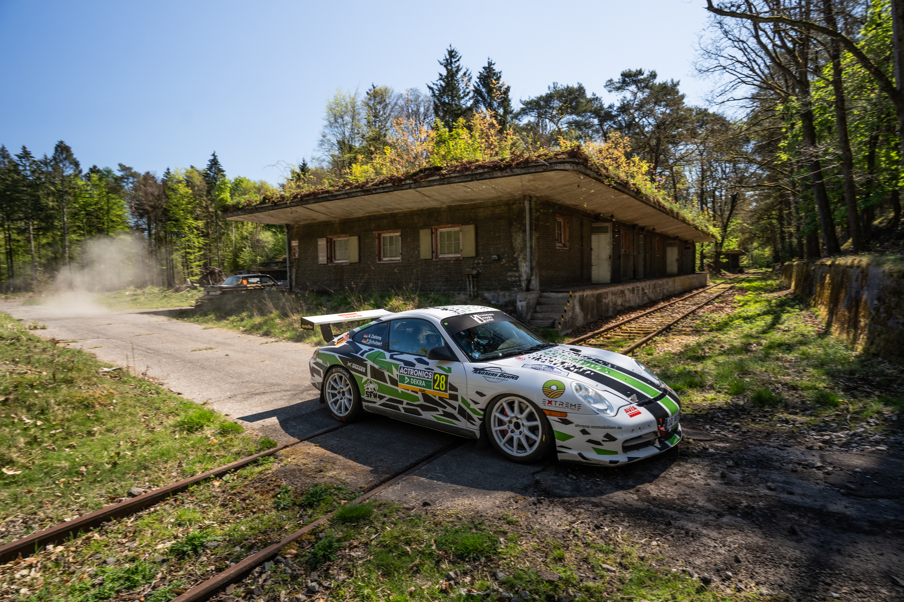 Die Klassenkollegen Andreas Dahms und Paul Schubert absolvierten die 140 Wertungskilometer in ihrem Porsche 996 GT3 insgesamt nur 7,6 Sekunden langsamer und belegten damit den zweiten Rang. Andreas Dahms: „Wir haben uns auf dem IVG-Gelände mit dem Auto etwas schwergetan, da der Porsche keinen Allradantrieb hat. Speziell auf losem Untergrund hatten wir gegen die Kontrahenten mit 4WD keine Chance. Paul und ich sind aber absolut zufrieden mit dem zweiten Platz. Wir hatten außerdem Pech mit einem Wildwechsel, wo ich ganz erheblich bremsen musste, um eine Kollision zu vermeiden. Das hat uns richtig Zeit gekostet, aber das gehört nun mal dazu. Die Rallye war insgesamt super organisiert und es hat viel Spaß gemacht.“