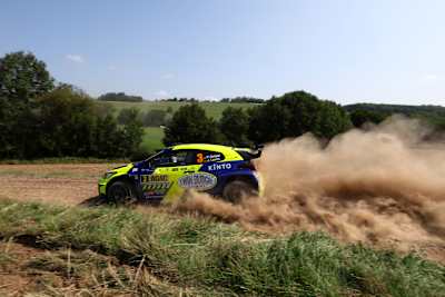 Mit einem Rückstand von 54,8 Sekunden wurden Philip Geipel und Co-Pilotin Jennifer Lerch (Toyota GR Yaris Rally2) Zweite und haben sich damit die minimale Meisterschaftschance bewahrt. „Es war schwierig und fing am Freitag mit einem schleichenden Plattfuß an. Ich habe viele Fehler gemacht, mich heute Morgen gedreht, danach verbremst. Das hat viel Zeit gekostet“, verriet der 38-Jährige. „Das Team hat dagegen einen tollen Job gemacht, ebenso wie meine Beifahrerin Jenny, sodass wir in der Meisterschaft noch mit dabei sind.“ Der lange auf Platz zwei liegende Julius Tannert schied nach einem Unfall in WP neun mit dem Škoda Fabia RS Rally2 aus und hat im Titelkampf keine Chance mehr.