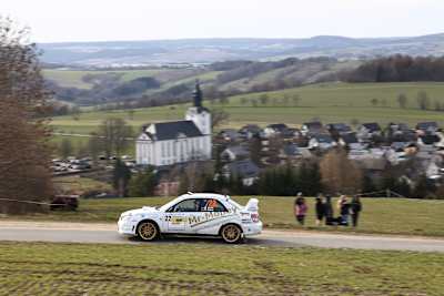 Markus Roch und Raphael Eckel wurden im Subaru Impreza WRX STI mit einem Rückstand von 15,1 Sekunden Zweite. Nach einem starken Auftritt am Freitag hatte das Fahrer-Duo die Führung übernommen, konnte sie am Samstag jedoch nicht verteidigen. Markus Roch: „Wir waren am Freitag gut bei der Musik dabei. Leider hatten wir am Ende einen Dreher, sonst wäre der Vorsprung noch größer gewesen. Am Samstag konnten wir auf den schnellen Passagen nicht mehr mithalten. Wir waren leistungsmäßig einfach unterlegen und hatten zudem ab WP sieben massive Bremsprobleme. Deshalb sind wir froh, das Ziel mit einem guten Ergebnis erreicht zu haben.“