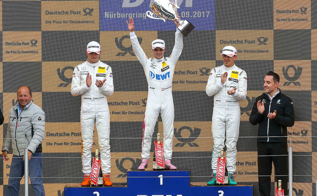 Lucas Auer ist im Kampf um den DTM-Titel wieder im Rennen. Beim 13. Saisonrennen fuhr der Mercedes-AMG -Pilot bei widrigen Wetterbedingungen auf dem Nürburgring von der Poleposition zum Sieg und verbesserte sich damit in der Fahrerwertung von der sechsten auf die zweite Position. Für Auer ist es der vierte Sieg in seiner DTM-Karriere, der dritte in der aktuellen Saison. Für eine Sternstunde in der Eifel sorgte nicht nur der Österreicher: Den Triumph für Mercedes machten Paul Di Resta, Robert Wickens und Maro Engel auf den Positionen zwei bis vier perfekt.