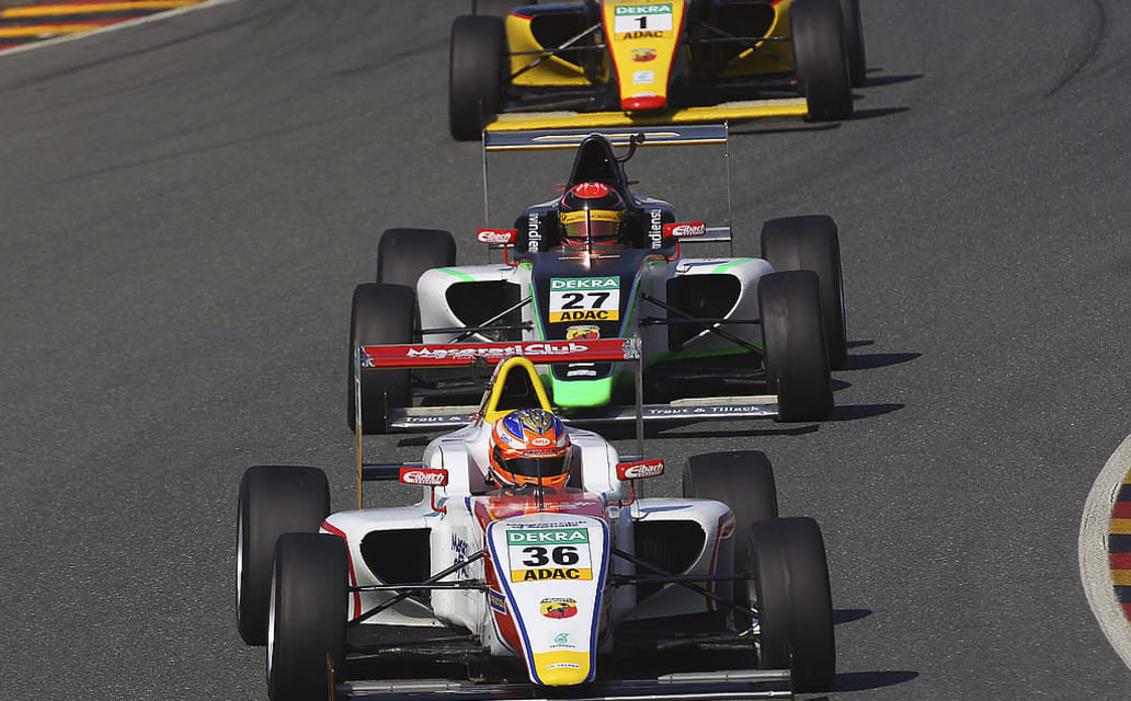 The run for the ultimate lap during the sixth round of the ADAC Formula 4 took place in heavy rain. 31 young talents had to learn the wet lines of the Saxonianring rapidly and our three youngsters passed this exam with good results grabbing 5 top 10 starts within the two races.
