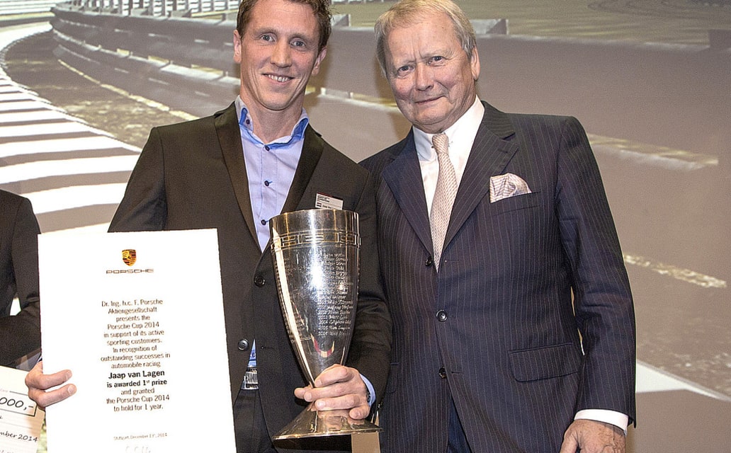 Van Lagen received the trophy on Saturday from Porsche AG Chairman of the Supervisory Board Dr Wolfgang Porsche at Porsche's Night of Champions party to mark the end of the year. In addition, Van Lagen, who racked up 5,010 points in the season that has just ended, also takes home a new Porsche 911 Carrera S worth more than 120,000 euros.