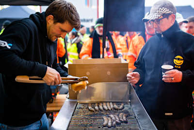 Without the support of the volunteer marshals, an ADAC GT Masters race would be inconceivable. To say thank you, the SSR Performance team, last year’s champions and runners-up this season, the ADAC GT Masters and eBay invited all the volunteers to a barbecue in the eBay Box at the Nürburgring.