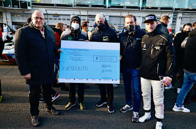 In support of the victims of July’s catastrophic flooding, the teams in the ADAC GT Masters made a donation amounting to € 50,000. The teams are also waiving their prize money from the two races at the Nürburgring. ADAC GT Masters title contender Maro Engel (36/Monte Carlo, Mercedes-AMG Team Toksport WRT), one of the initiators of the #WirfuerdieEifel action, presented a cheque to Guido Nisius, the mayor of the Adenauer district, on the starting grid ahead of Sunday’s race.
