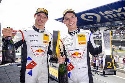 Pole-sitter Jack Aitken carried on at the start of Sunday’s race where he left off in the morning’s qualifying session. The Brit defended his lead emphatically and handed the Lamborghini over to his partner Albert Costa Balboa with a lead of 2.5 seconds. The Spaniard completed the race in relative comfort and took the chequered flag after 38 laps. He was followed over the finish line by Thierry Vermeulen (19/NL), who had taken over from Mattia Drudi (23/I) at the wheel of the #33 Audi R8 LMS GT3 Evo II. Second place, in front of his home fans, was Vermeulen’s biggest success so far in the German GT Championship. The closing stages were a dramatic affair. Christian Engelhart (35/Starnberg) was running in a comfortable third place, which would have meant the lead in the overall standings, when the #91 Porsche 911 GT3 R started coasting with just a few metres remaining. Having looked guaranteed to take third place, Engelhart and his partner Ayhancan Güven (24/TUR) had to settle for eighth. The beneficiaries of this incident were Franck Perera (38/F) and Arthur Rougier (22/F) in the #19 Lamborghini Huracán GT3 Evo of Emil Frey Racing, who came home third to snatch a last-gasp podium. Christopher Mies (32/Düsseldorf) and Tim Zimmermann (25/Langenargen) finished fourth in the #1 Audi R8 LMS GT3 Evo II, which is the best result of the season so far for the Montaplast by Land-Motorsport pairing. There then followed a big gap before the best-placed Porsche 911 GT3 R, with Joel Sturm (20/Brühl) and Sven Müller (30/Bingen) taking fifth place for Allied-Racing.