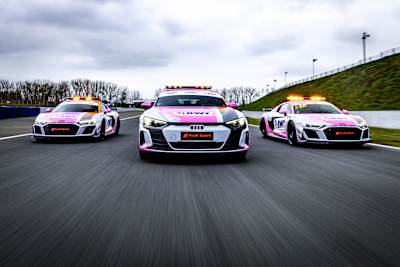 This season, Audi cars will again regulate the action at the racetracks in the ADAC GT Masters. The Safety Car is a familiar face: Fans and spectators will recognise the Audi R8, which has sported the pink look of series partner BWT since 2021. This year’s Lead car is a brand-new, fully-electric Audi e-tron.