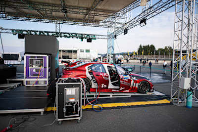 This season, the ADAC GT Masters is using the sustainable fuel “Blue Gasoline 98 GT Masters”, which consists of roughly 50 percent renewable components. The FIA ETCR eTouring Car World Cup does not use any fossil fuels at all. The fully-electric series held the finale of its world championship on the support programme for the German GT Championship at the Sachsenring. As well as exciting races, the series also demonstrated that it is possible to run 680-hp electric race cars with green and zero-emission energy. After each outing, the cars pulled into the “Energy Station”, where their batteries were almost completely recharged from CCS2 chargers with a capacity of 62 kw/h in just one hour. The energy required for this recharging comes from hydrogen fuel cells, which neither require local electricity nor emit CO2. All the charging process required was water.