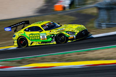 Raffaele Marciello (27/I) struck with the Mamba once again. The Mercedes-AMG works driver of Mann-Filter Team Landgraf was the fastest driver in the first qualifying session at the Nürburgring on Saturday morning, with a time of 1:25.544 minutes that saw him set a new ADAC GT Masters qualifying record. In addition to the Pirelli Pole Position Award, he clinched three bonus points for the overall standings for himself and his team-mate Maro Engel (36/Monte Carlo), thereby reducing his deficit to the leaders to ten points.