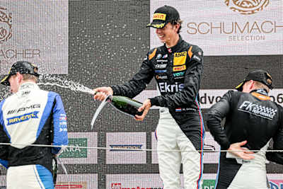 The only way was up for Leon Köhler and Maxime Oosten (both FK Performance) in Saturday’s third race of the season. Having missed qualifying due to a clutch issue, the BMW duo worked their way up to fifth place from their starting position of 14th. Tom Kalender and Elias Seppänen from Landgraf Motorsport faced a big challenge from 16th place on the grid. However, a strong showing in Sunday’s race saw them finish a fine eighth. However, it was Alexander Schwarzer and Alexander Fach from Fach Auto Tech who produced the biggest fightback. They pulled off ten overtaking manoeuvres to guide their Porsche 911 GT3 R to second place overall. This was the first overall podium of the season for the only ProAm competitors in the field.