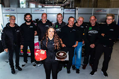 Sunday was a special day for Carrie Schreiner. The Land-Motorsport driver celebrated her 27th birthday. It goes without saying that her team welcomed her in the morning with birthday cake and many birthday wishes. And there was more to come: during an autograph session with the fans, all the drivers got together to sing happy birthday to the only woman in the ADAC GT Masters field.