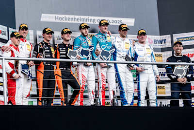 Champions Salman Owega and Finn Wiebelhaus win the final race of the season in Hockenheim. Leyton Fourie and Tim Zimmermann finish second in the race and runners-up in the ADAC GT Masters. Schwarzer and Fach win in the Pro-AM Cup.