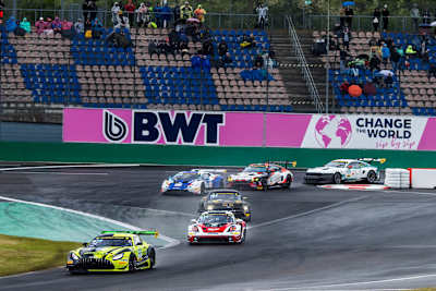 The heavens opened as the race was about to start, meaning that most drivers opted for wet-weather tyres from the word go. Fittje emerged from the turmoil at the start to take the lead. When Simon Connor Primm (20/Großschirma/Paul Motorsport) slid off the track in his Lamborghini Huracán GT3 Evo2 after contact, his return to the circuit distributed some liquid on the surface that led to a race interruption. After the restart, Fittje defended his lead ahead of Birch and Jonathan Cecotto (25/VEN/Haupt Racing Team) in the Ford Mustang GT3, while Bulatov worked his way up to fourth place. While Razoon chose to go with a long stop and change tyres during the first pit stop phase, their rivals just refuelled and Hantke returned to the race directly behind Wiskirchen as a result. A slip by the Mercedes driver allowed Hantke to take the lead, which he extended before pitting for a long stop and tyre change.