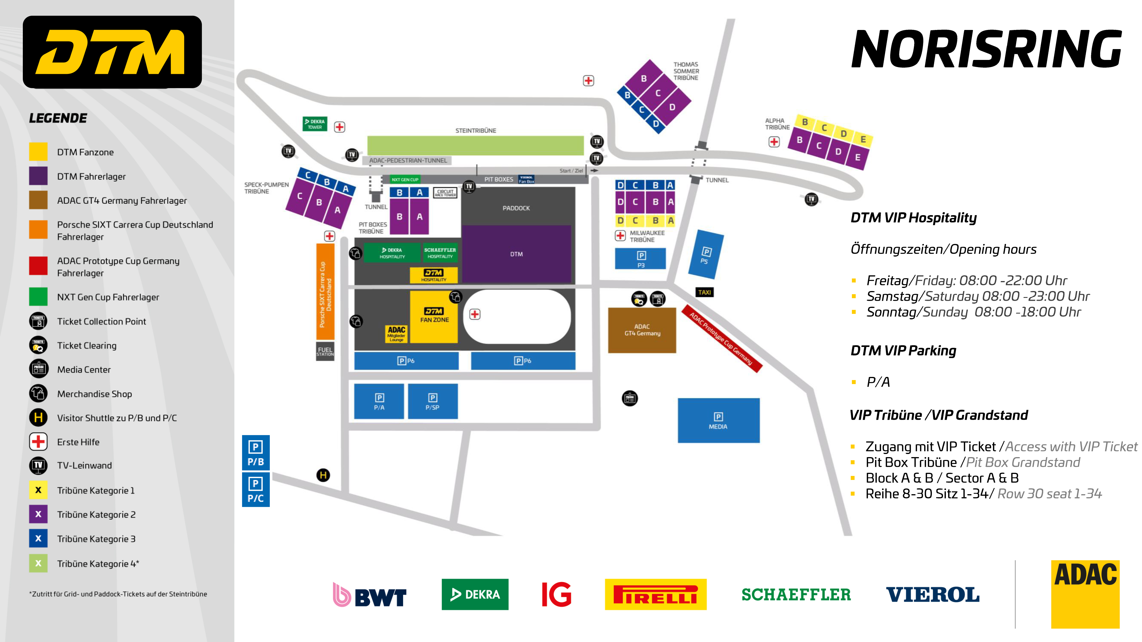 Tickets for the DTM are available from € 74 when purchased online at the official DTM Ticketshop by 23:59 on the evening of Thursday 3rd July. ADAC members save another 10% when purchasing their tickets this way. From Friday, tickets are available at the standard price both online and on the gate at the Norisring. Admission is free for under 16s when accompanied by a paying adult.