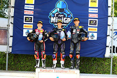 Am vergangenen Wochenende kamen die Piloten der FIM MiniGP Germany auf dem Templiner Ring zu den Wertungsläufen fünf und sechs zusammen. Bei Wind und sommerlichen Temperaturen teilten sich Robin Siegert (Pockau-Lengefeld) und Fynn Kratochwil (Mühlhausen) in der Ohvale-190 die Siege. In der Klasse Ohvale-160 gab es mit Casper Pennings (NLD) und Ole Säuberlich (Bad Blankenburg) ebenfalls zwei unterschiedliche Gewinner auf dem 1105 Meter langen Rundkurs.