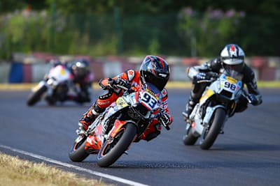 Robin Siegert (1./2., Pockau-Lengefeld): „Die Strecke von Templin ist sehr anspruchsvoll. Es gibt sehr viele Kurven, wodurch es sehr anstrengend ist, hier zu fahren. Leider waren die wechselnden Wetterverhältnisse mit Regen und Trocken sehr schwierig. Die Qualifyings sind gut gelaufen und ich war am Ende nur 0.1 Sekunden hinter dem Ersten. Ich habe mich immer nach vorn orientiert und konnte die Pace gut halten. Leider wurde ich noch einmal ausgekontert und so blieb mir nur noch die Möglichkeit in der letzten Kurve anzugreifen. Das hat funktioniert und ich konnte das Rennen gewinnen. Für das zweite Rennen war das Ziel, wenn möglich, zu überholen und ansonsten dranzubleiben und Punkte mitzunehmen. Ich hatte einen guten Start. In der letzten Runde wollte ich die gleiche Attacke setzen wie im ersten Lauf. Leider hatte ich ein zwei Kurven zuvor einen Vorderradrutscher und konnte die Pace nicht mehr halten. Ich bin sehr glücklich mit meinem Wochenende. In drei Wochen in Harsewinkel muss ich schauen, wie ich mit der Strecke zurechtkomme, da ich dort noch nie gefahren bin. Aber ich möchte viel Spaß haben und das Beste mitnehmen.“
