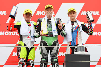 „Das zweite Rennen war der Wahnsinn. Ich am Start direkt als Erster in die erste Kurve, obwohl die anderen auf der Gegengeraden natürlich zurück waren, aber ich habe einen guten Rhythmus gefunden. Zur Rennhälfte ist mir die Konzentration etwas verloren gegangen, da bin ich bis auf Platz sieben zurückgefallen, aber am Ende habe ich noch einmal alles gegeben, habe in der letzten Kurve noch einmal richtig reingehalten und konnte gewinnen. Ich bin überglücklich und danke meiner Familie, allen Sponsoren und einfach allen Fans, die sich das hier anschauen“, strahlte der 16-Jährige vom Podium.