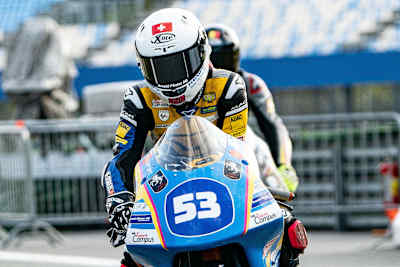 Sein jüngerer Bruder Levin kommt mit 35 Punkten als Zweiter der Gesamtwertung am Sachsenring an, dicht gefolgt vom schnellsten Deutschen, Rocco Caspar Sessler, der 30 Punkte auf seinem Konto hat, nachdem er in Assen einen sechsten Platz und mit Rang zwei im zweiten Rennen sein erstes Podest im Northern Talent Cup einfahren konnte.