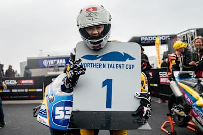Der Schweizer schnappte sich den Sieg nur 0,106 Sekunden vor Sessler, der das Rennen über mehrere Runden angeführt hatte und mit Platz zwei sein bisher bestes Ergebnis im Northern Talent Cup holte. Der 14-Jährige berichtete: „Ich hatte ein sehr gutes Qualifying, wodurch ich als Zweiter in die Rennen starten konnte. Im ersten Lauf fing es in der Startaufstellung auf einmal an zu regnen und im Rennen hat dann der Quickshifter vom Motorrad nicht funktioniert. Dennoch konnte ich gute Punkte mitnehmen und kam ich als Sechster ins Ziel.“