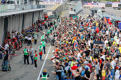 Schon am Donnerstag kamen zahlreiche Fans zum Sachsenring und nutzen den Pit Lane Walk, um ihren Stars ganz nah zu sein. Auch auf den Campingplätzen rund um die Strecke herrschte großartige Stimmung und Vorfreude auf den LIQUI MOLY Motorrad Grand Prix Deutschland. Auch der Charity Run am Mittwochabend fand traditionell viel Anklang. Der Erlös aus dem Verkauf der streng limitierten Tickets für den Wohltätigkeitslauf geht in diesem Jahr an die Kinderarche Sachsen.