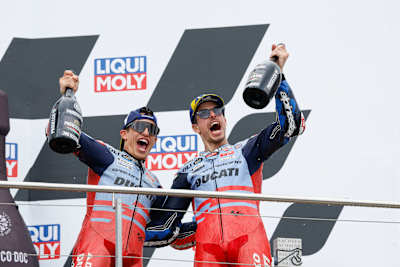 Fünffach-Erfolg für Ducati beim 85. Grand Prix auf deutschem Boden. Márquez-Brüder erstmals gemeinsam auf dem MotoGP-Siegertreppchen. Fermín Aldeguer gewinnt in der Moto2, David Alonso in der Moto3.
