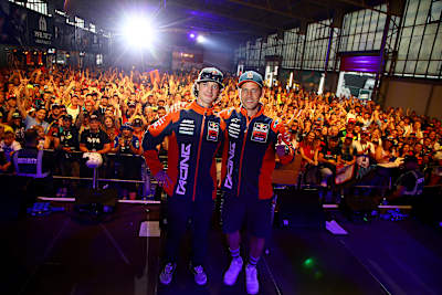 Die Fahrerpräsentation in der Karthalle war wieder einmal der Höhepunkt des Rahmenprogramms. Riesiger Jubel brandete im Publikum auf, als die beiden Moderatoren Lukas Gajewski und Tommi Deitenbach die deutschen Zweiradhelden Stefan Bradl, Sandro Cortese und Alex Hofmann zusammen mit Eve Scheer und Christian Brugger von Servus TV auf die Bühne baten. Die MotoGP-Fahrer Jack Miller, Miguel Oliveira und Raúl Fernández genossen ebenfalls das Bad in der Menge. Mit von der Partie war auch Heinz Kinigadner. Der zweifache Motocross-Champion erhielt aus den Händen von Klaus Klötzer vom ADAC Sachsen und von Künstler Kay Leonhardt einen Scheck über 5.000 Euro für die von ihm mitbegründete Stiftung Wings for Life.